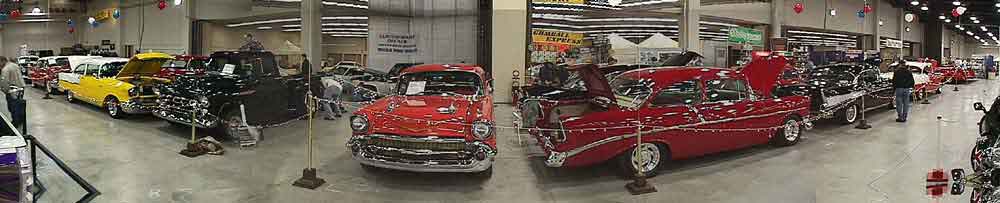 Our display included cars from members and nonmembers of the club. With a wide range, from original to pro-street. The biggest headache was trying to arrange five black cars, seven red, two yellow and one black and silver. We somehow managed, but there was very little room to move around between them. Those who participated are to be thanked for all the pushing and pulling they had to do while trying to get everything in place. I'll have to say it appeared to be a pretty good show with many quality cars. As the name implies it is a Rod and Custom show and lived up to that billing. One full custom '62 Impala was trailered in from Wisconsin was rumored to have cost around $200,000 dollars. A 64 Lincoln was the same one shown on the front cover of the current Custom Rodder Magazine. I believe everyone felt the entertainment provided was a little weaker than in previous years. Now some more good news. Of those 15 shown, 13 received trophies and Ben Byers also received the "Personality Plus" plaque for his 1957 Chevy. Congratulations to the winners. In the past our club has been very fortunate and won money from Starbird for the club display. Bad news is - not this year. The mini-truck club won the top award of $1,500 because of their quality, the display itself and I might add, they deserved every cent. Those young people hauled in sand, built a lifeguard tower, had a jet ski and other things you might find at a beach. It was quite impressive and certainly beat our balloons, lights and stanchions. Don't get me wrong, we tried. But future shows will call for new and fresh ideas. Our thanks go out to those who participated and also to those who came for a visit, stayed with the cars, brought food, loaned us things or in any way helped make the show a success. We appreciate your efforts. | ||||