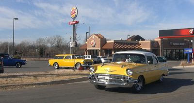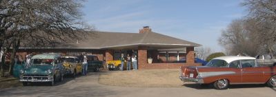 High Pointe Christmas Party A small,but impressive,contingent of Chevies met at I-35 and N.E.23rd Street on Sunday, December 21 to tour out to High Pointe residential care facility. Our cars are a popular part of the annual Christmas Party held for the young patients there. It was a perfect day for the short cruise out N.E.50th Street to the facility. We enjoyed visiting with anyone interested in the cars, sampled the refreshments and watched as Santa passed out gifts to the residents. Richard & Linda Bahr, Curtis & Kay Welch, Rudy & Gloria Escalera, Bill Washam, Ken & Cecilia Monroe, True Osborne, Mike & Carole Smith, David & Mahala Jones and Johnny Hays brought nine cars.