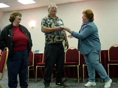 ![]() Photo by Kay Lynn Dragoo Rustyne Harris returns a credit card to Bill Chaffin as Kathy Chaffin looks on. It seems Bill had left the card at the front desk of the motel. The clerk returned the card to Rustyne while the club was eating out Saturday night. We all had a good laugh when Rustyne thanked the Chaffins for dinner saying we had put the entire bill on the card. She was kidding of course. |